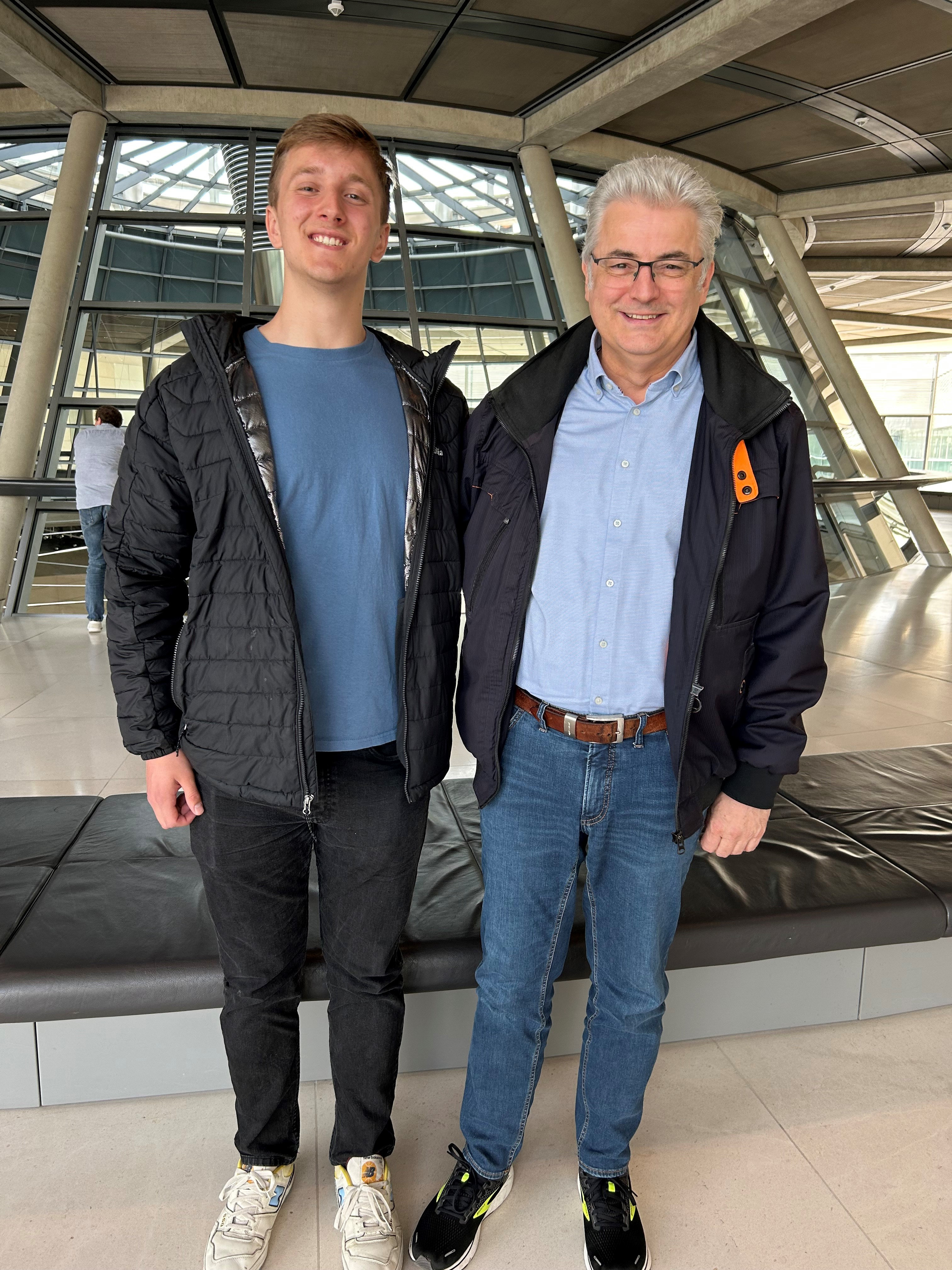 In dieser Woche gab es ein Wiedersehen in Berlin: Axel Knoerig hatte den jungen Amerikaner zur Teilnahme an einer dreitägigen politischen Bildungsfahrt in die Hauptstadt eingeladen. Hier ein Bild vom gemeinsamen Treffen heute Vormittag im Deutschen Bundestag.